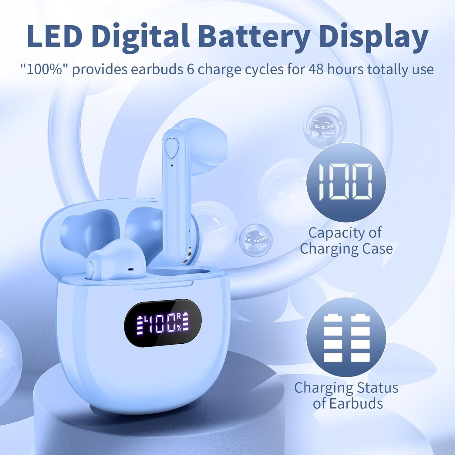 Wireless Earbuds, V5.3 Bluetooth Headphones, 48H Playtime LED Power Display Wireless Charging Case, …