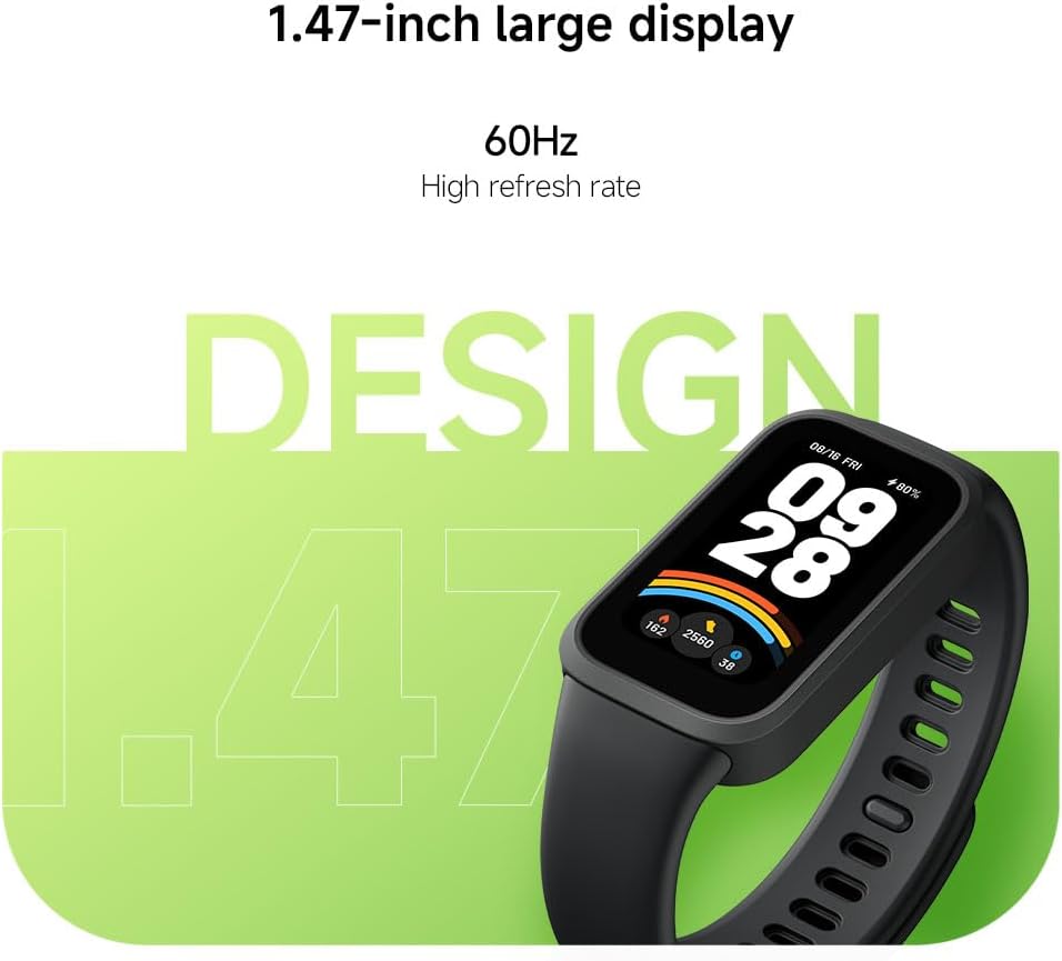 1.47″ Full View Display: The Xiaomi Smart Band 9 Active features a 1.47″ TFT screen with vivid colors and improved brightness, delivering a clear and comfortable viewing experience.